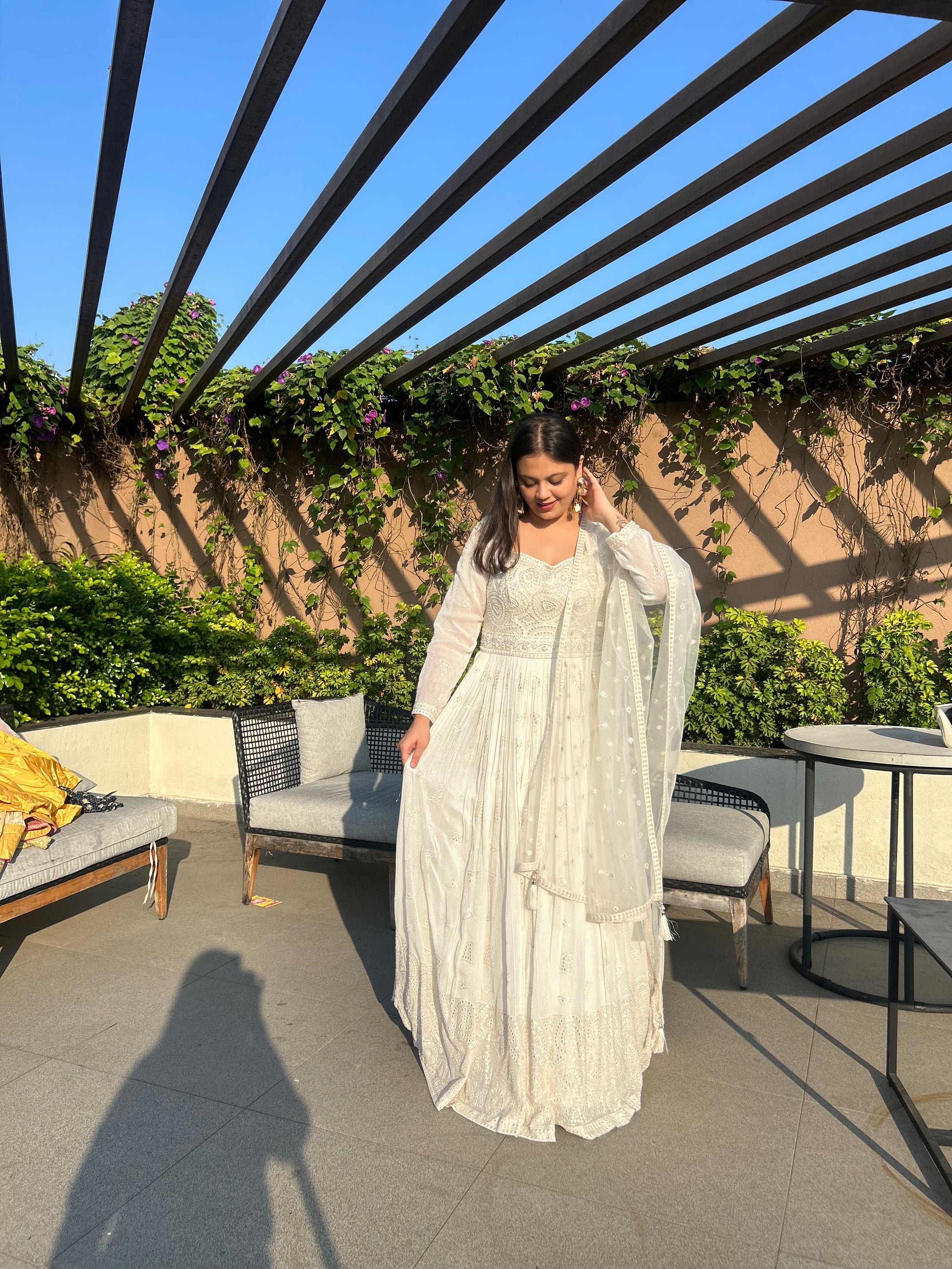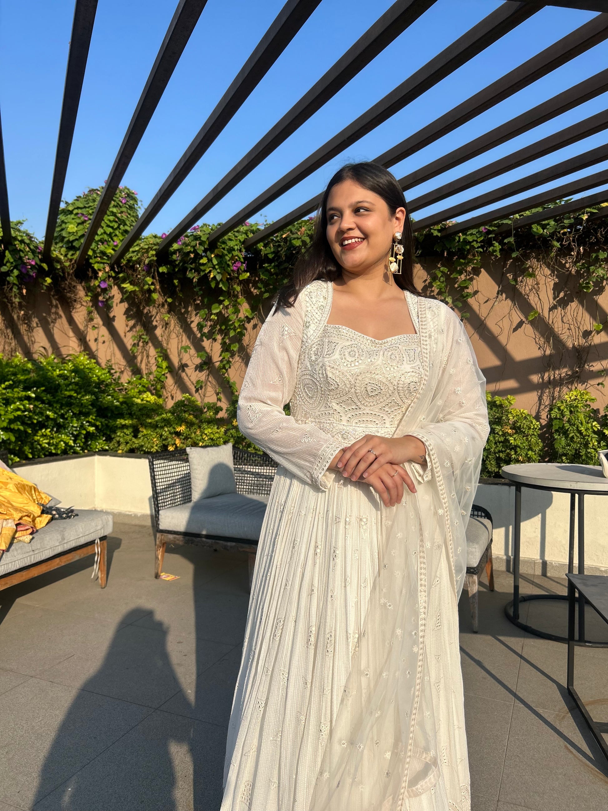 Celine – Ivory Lucknowi Chikankari Georgette Anarkali with Dupatta