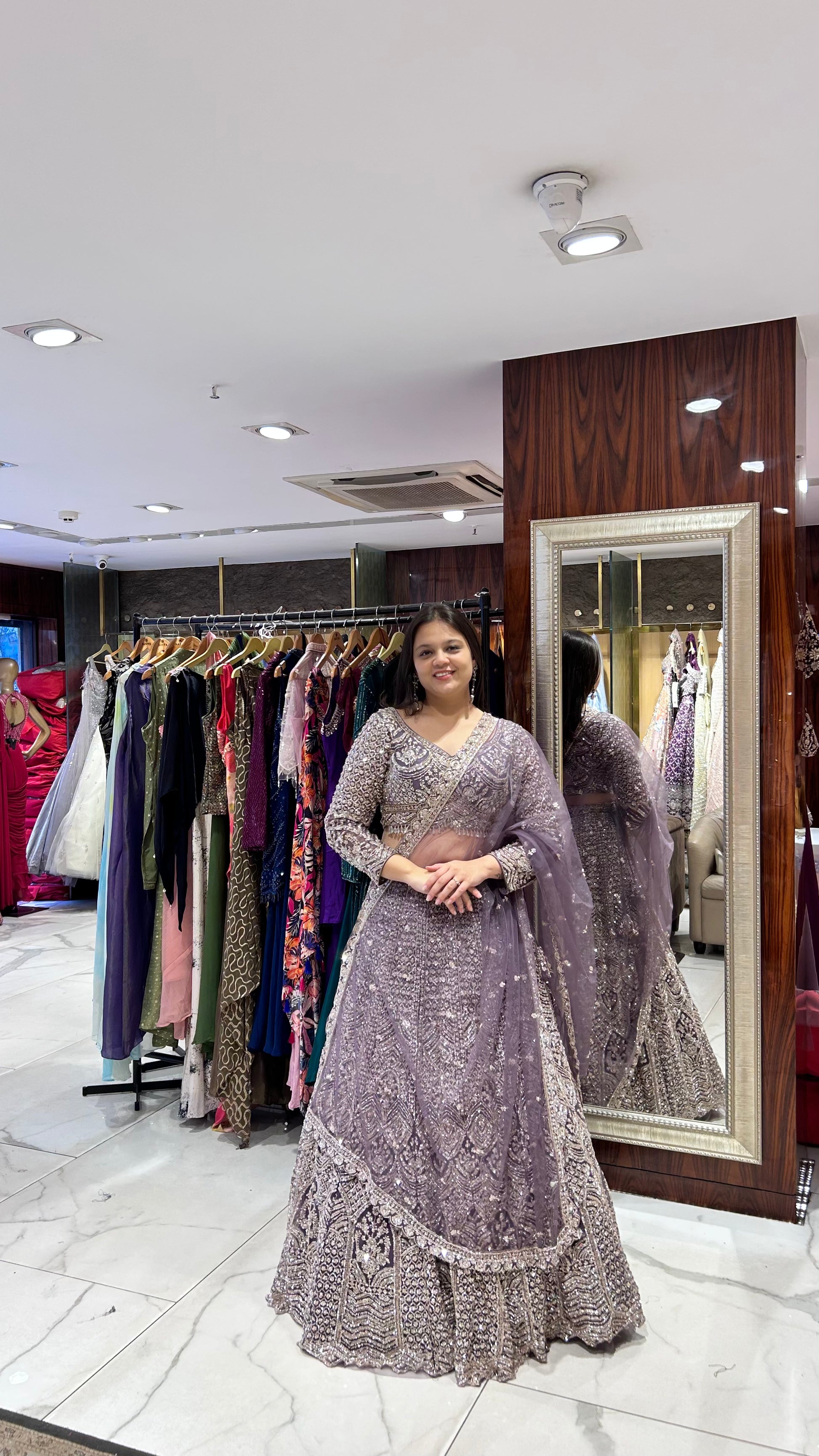 Nitya – Mouse Grey Imported Net Embroidered Lehenga Set